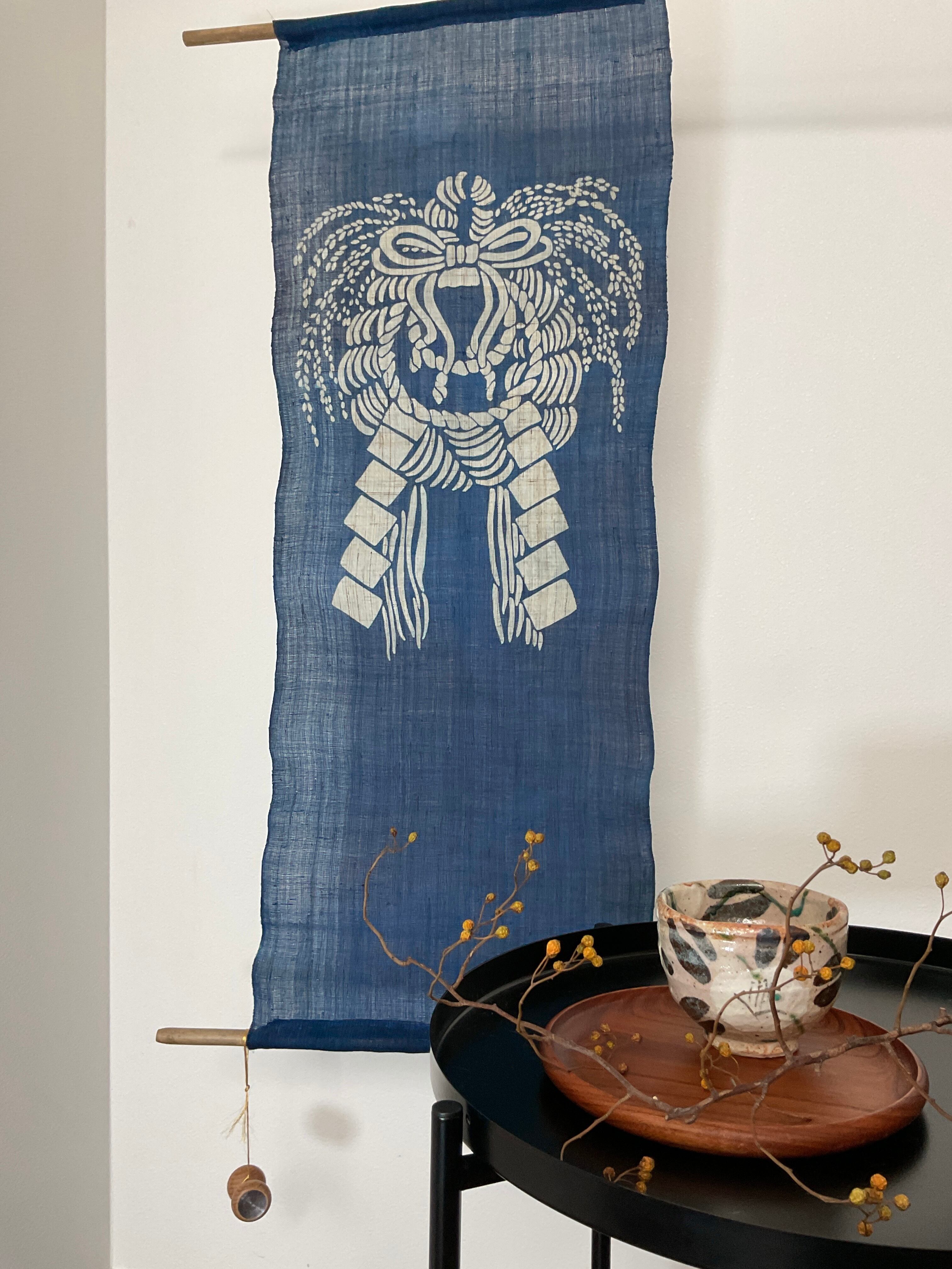藍染の深い青色は、心を静める効果があり、空間に落ち着いた雰囲気を演出します。